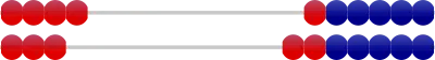 2色の百玉そろばんでは、大きい数に小さい数を足すほうが、視覚的に数の構成を理解しやすい
